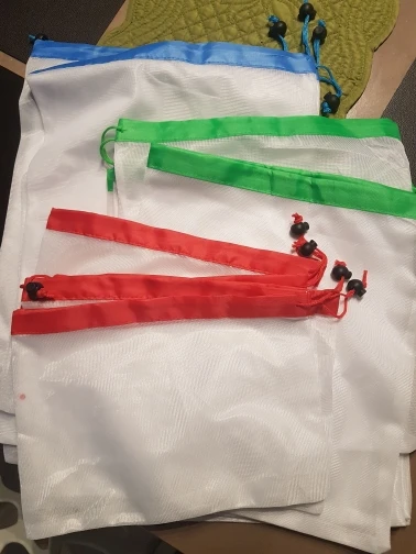 At last! Come to my eco-friendly bags. Look solidly, breathable, but fine mesh, wake up nothing. Ordered the trial a package of five pieces size maxi. Just for a bunch of bananas and pounds apples will go down, and vegetables. Important-not forget to bring! Thanks for the quick and track delivery. Eco-friendly bags in each house!)